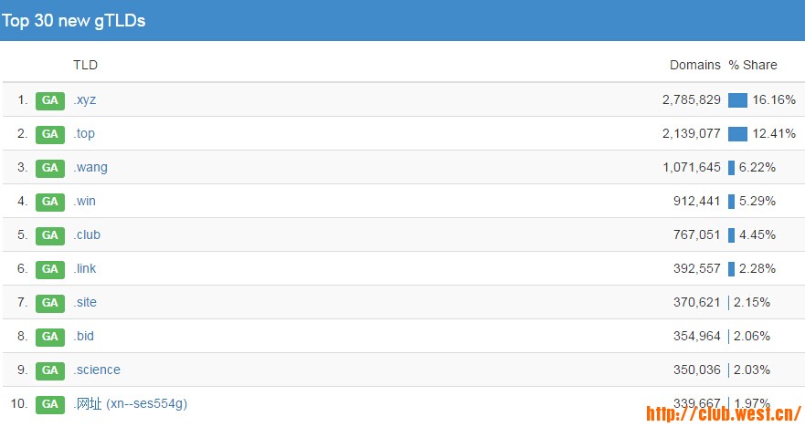 2016年5月5日12:00:00起,.top部分精品保留域名將在西部數(shù)碼開放溢價(jià)注冊(cè);顒(dòng)上線后直接在西部數(shù)碼域名注冊(cè)頁面查詢并注冊(cè),查詢結(jié)果會(huì)顯示具體域名的注冊(cè)價(jià)格。本次開放的.top域名以雙拼域名為主,還有大量三字母等簡(jiǎn)短、含義豐富的域名供用戶注冊(cè)選擇。 .top域名溢價(jià)注冊(cè)購買入口:http://www.ps-sw.cn/services/domain/top.asp .top域名溢價(jià)注冊(cè)列表詳見:http://www.ps-sw.cn/Customercenter/temp/top-open5.5.xls 活動(dòng)須知:.top域名溢價(jià)注冊(cè)包含首年注冊(cè)價(jià),注冊(cè)價(jià)格以平臺(tái)頁面上顯示的價(jià)格為準(zhǔn)。西部數(shù)碼做為TOP域名最大的注冊(cè)商,累計(jì)通過西部數(shù)碼注冊(cè)TOP域名82萬余個(gè),市場(chǎng)占有率38%。此次開放的TOP溢價(jià)域名,西部數(shù)碼將提供極具競(jìng)爭(zhēng)力的價(jià)格,歡迎廣大米友選購。 全球的.top,.top域名注冊(cè)量突破210萬! 據(jù)ntldstats.com最新數(shù)據(jù)顯示,目前.top域名域名注冊(cè)量已經(jīng)突破210萬,具體為2129379個(gè),牢牢占據(jù)新頂級(jí)域名第二位。 目前.top七天平均日增長(zhǎng)量近8500個(gè),增幅位列所有新頂級(jí)域名首位。從全球市場(chǎng)看,.top海外市場(chǎng)的發(fā)展依舊保持強(qiáng)勁勢(shì)頭,海外的市場(chǎng)份額已突破20%,達(dá)到了20.2%,國(guó)內(nèi)市場(chǎng)份額占據(jù)79.8%,保持穩(wěn)步增長(zhǎng)狀態(tài)。